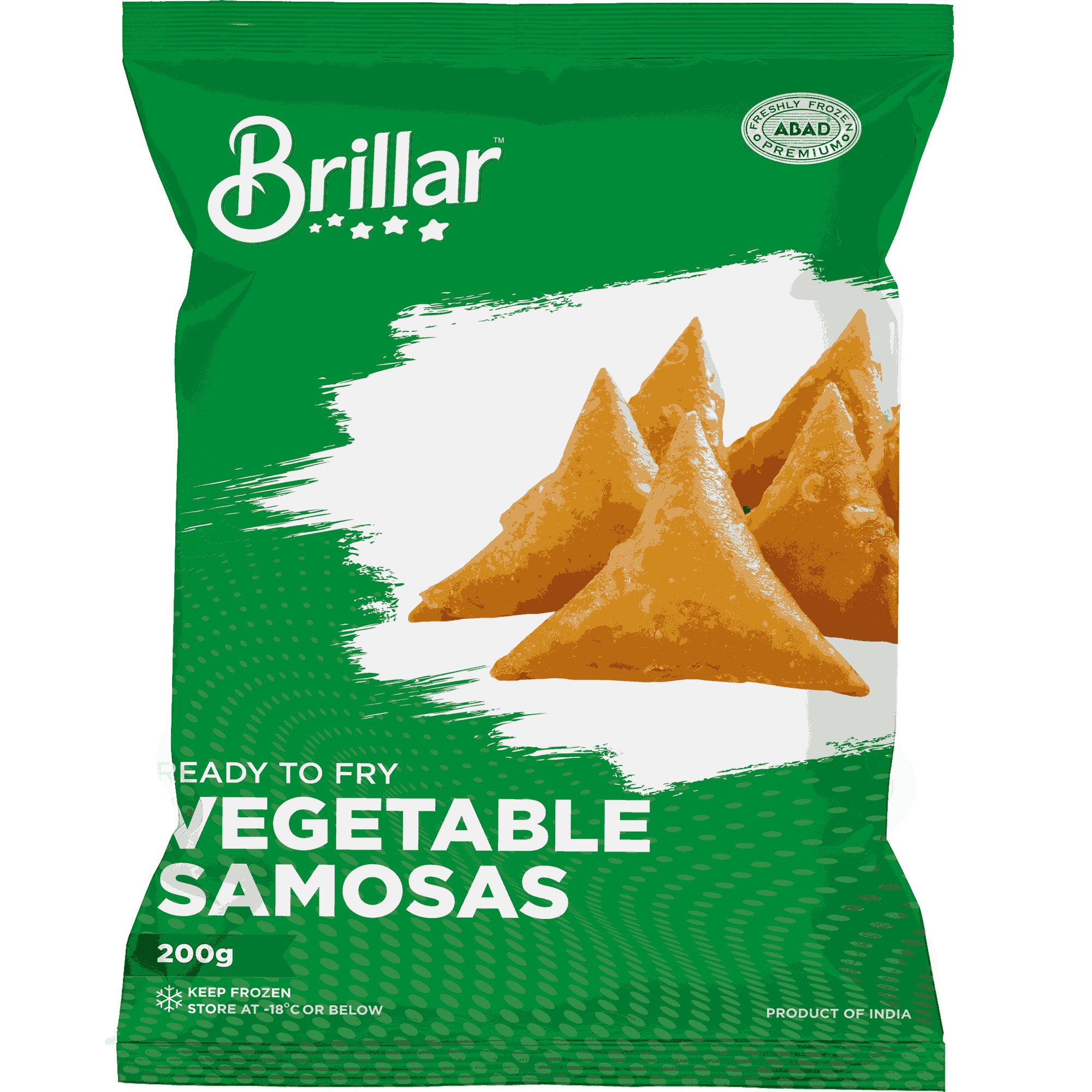 Enjoy the classic taste of homemade samosas in minutes with Brillar’s Ready to Fry Vegetable Samosas. This 200g pack is filled with a flavorful mix of vegetables and spices, all wrapped in a crispy pastry sheet. They are perfect for a quick snack or a side dish.